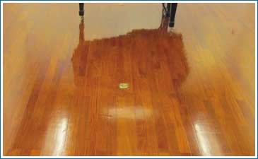 因木質地板具毛細孔,沾染之漆或膠會吸咬住,只要使用小黃刮刀加以處理,逐步逐片檢查,將其輕輕刮除,清洗完畢後再使用木質地板專用蠟即可。